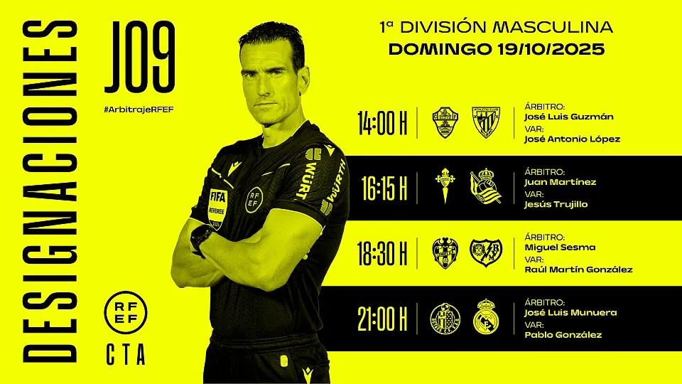 西班牙足協(xié)官方公布了周日西甲比賽裁判安排,何塞-穆努埃拉將執(zhí)法赫塔費(fèi)vs皇馬。