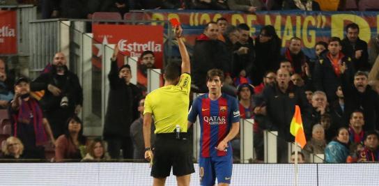 這位裁判向來對(duì)巴薩執(zhí)法嚴(yán)厲,在其執(zhí)裁的44場(chǎng)巴薩比賽中,已累計(jì)出示12張紅牌,創(chuàng)下他個(gè)人對(duì)單一球隊(duì)的最高罰牌紀(jì)錄。他的紅牌名單上不乏梅西、內(nèi)馬爾、蘇亞雷斯和萊萬多夫斯基等球星,阿爾維斯和朗格萊甚至曾兩次被他罰下。