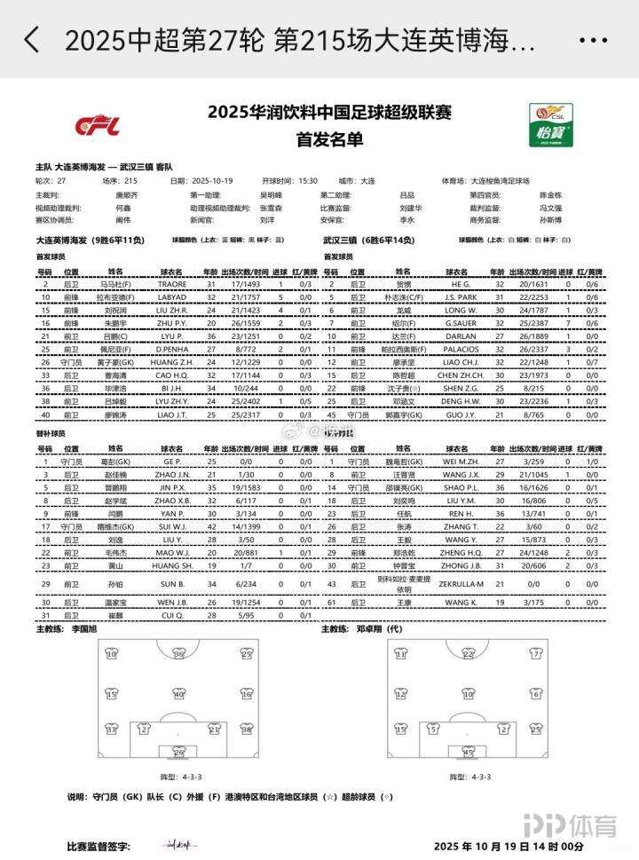 北京時(shí)間10月19日15:30,中超聯(lián)賽第27輪,大連英博坐鎮(zhèn)主場(chǎng)迎戰(zhàn)武漢三鎮(zhèn),本場(chǎng)比賽主裁判是唐順齊,VAR是何鑫,賽前雙方公布首發(fā):